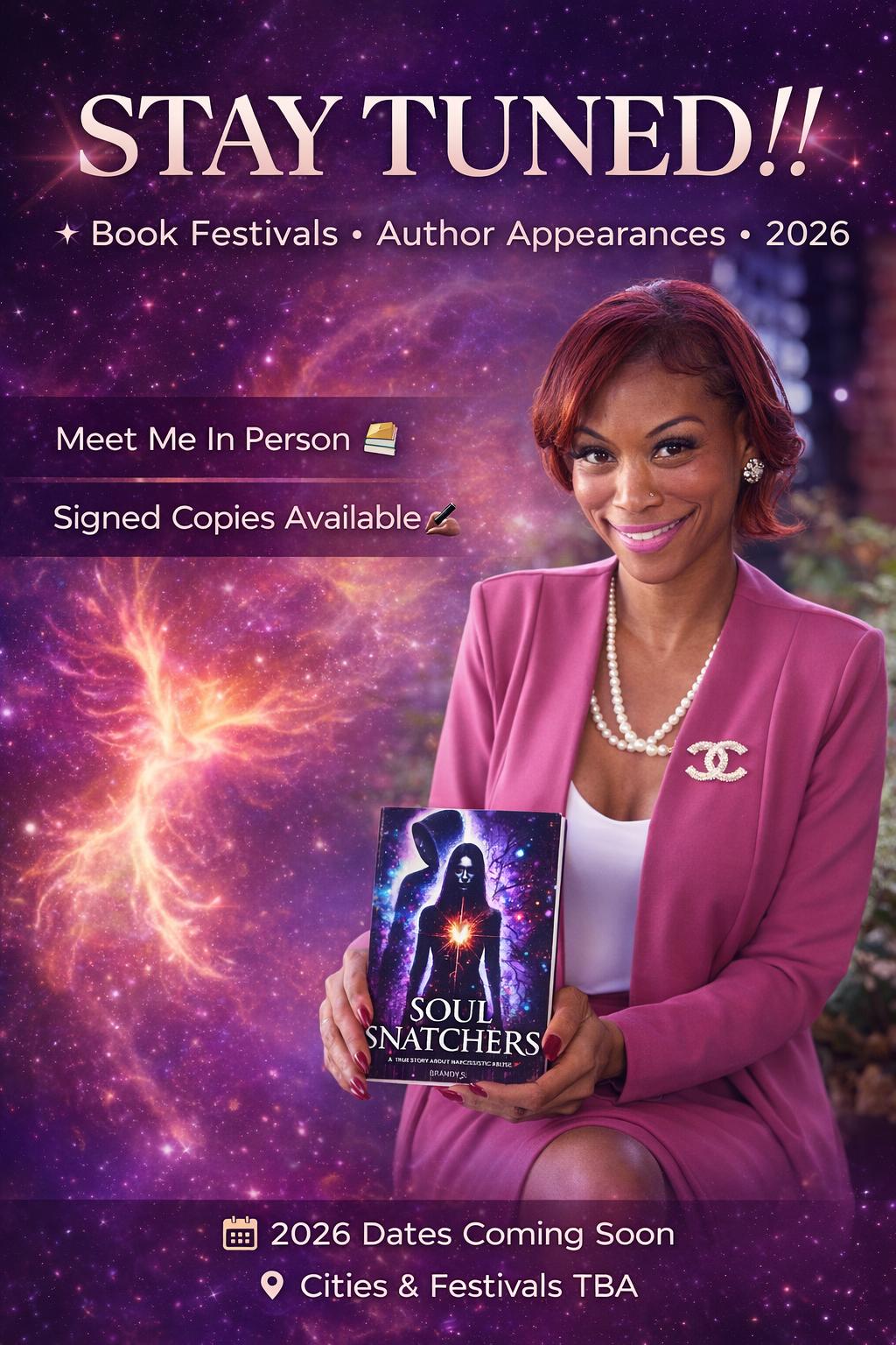 In the coming months, we’ll be gathering – both in person and virtually – for live events that create space for reflection, dialogue, and connection. These experiences will include author appearances, book fairs and festivals, and intimate conversations exploring the deeper themes, questions, and truths woven throughout Soul Snatchers.